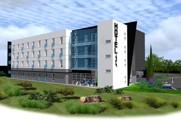 – Construction d’un hôtel de 77 chambres avec salle de petit déjeuner ;