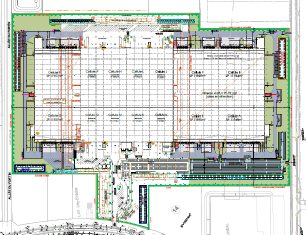 –Extension de 6 cellules de stockage < 12 000 m² avec quais et cours camions associées